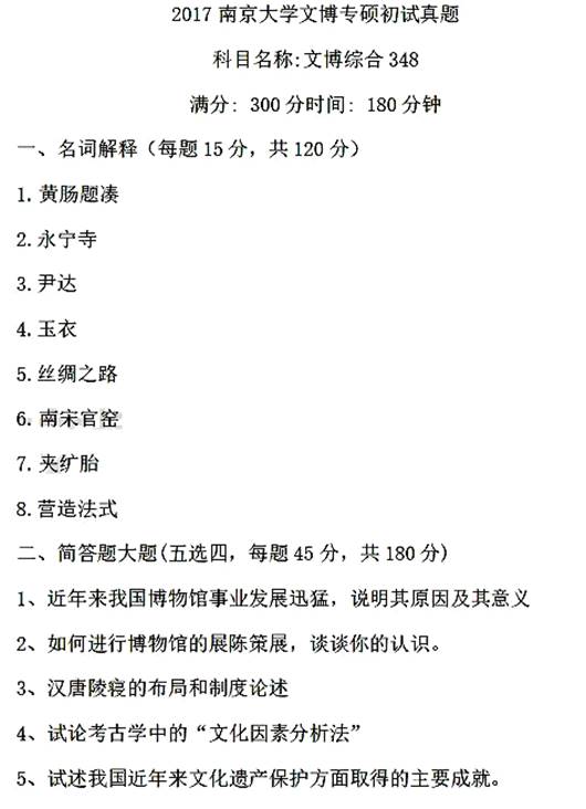 2017年南京大学《348文博综合》考研真题(回忆版)