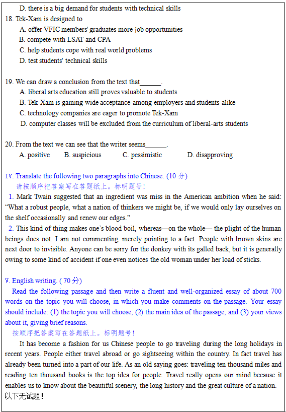 2010年三峡大学外国语学院791综合英语考研真题