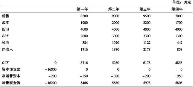 答:可以运用倒推法计算每一年的经营性现金流,其中应包括净营运资本的现金流、净利润和总的现金流,具体结果如下: