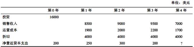 计算项目净现值Best制造公司正在考虑一项新的投资项目,关于该项目的财务预测如下所示。公司税率为34%。假定所有的销售收入都是现金收入,所有的运营成本和所有税也是以现金支出,且所有的现金流都发生在年末。所有的净营运资本在项目结束时都收回了。