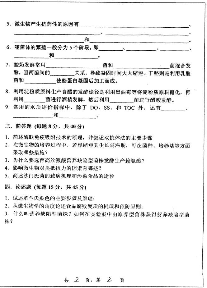2. 全国名校食品微生物学考研真题汇总(含部分答案)