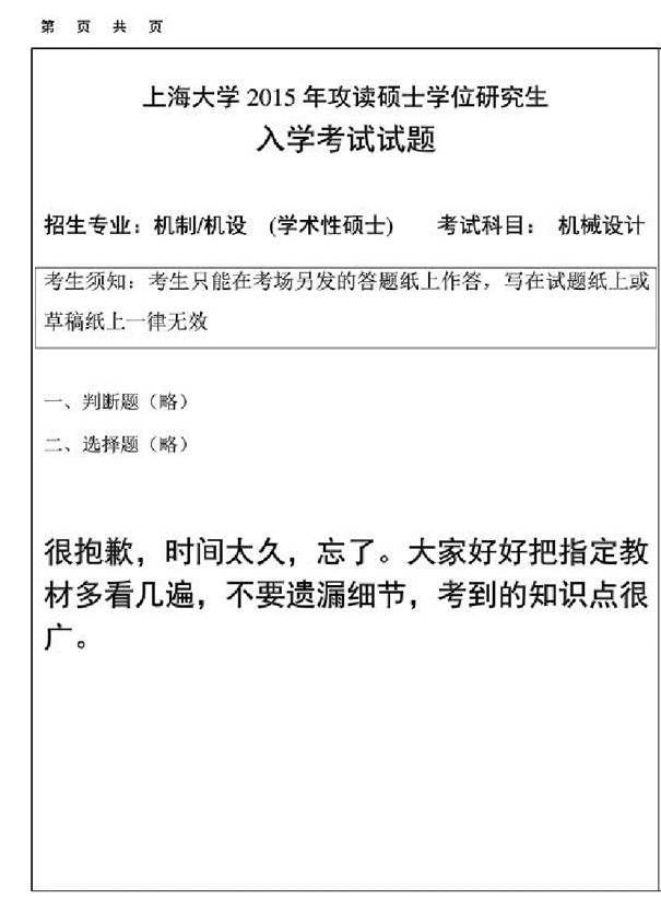 第1部分 上海大学机械设计考研真题(含部分详解)