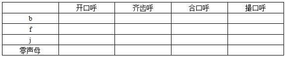 1列表分析下列声母韵母的配合关系,在相应的栏目中划上“+”或“-”。(8分,每行2分,错一处扣0.5分,扣完为止)