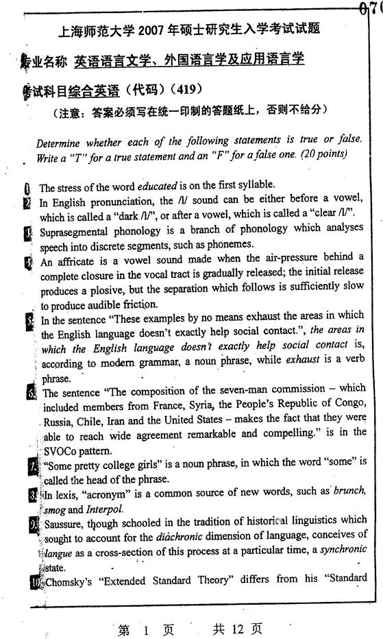 1. 上海师范大学外国语学院《综合英语》历年考研真题汇总