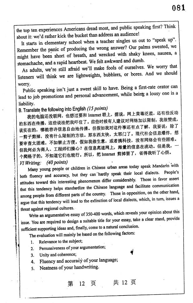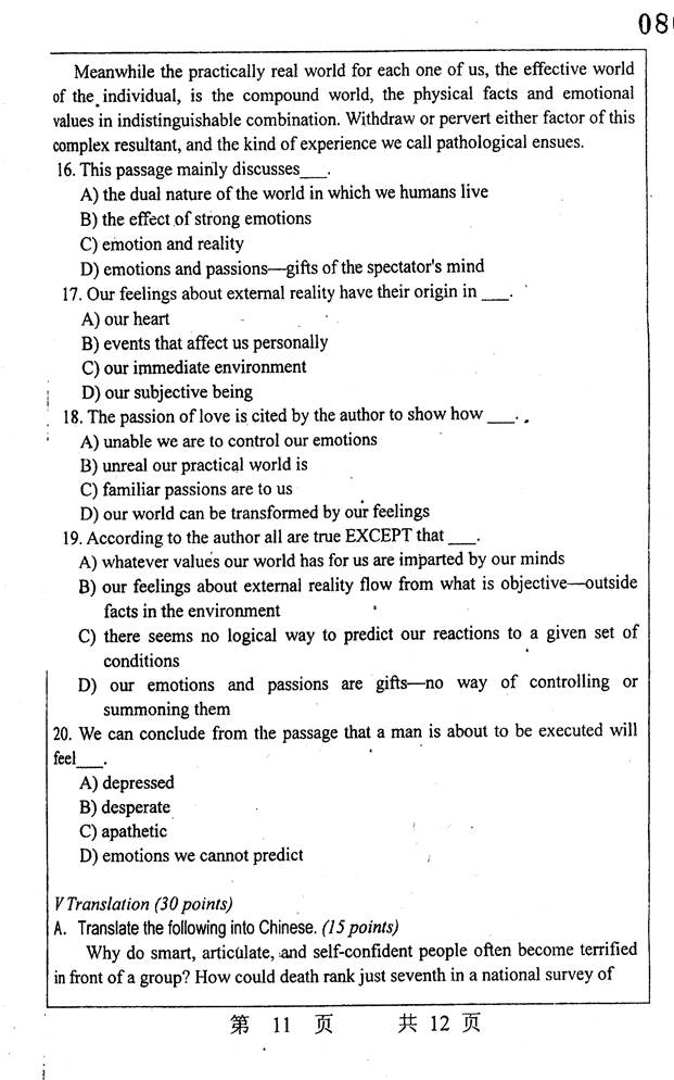 上海师范大学外国语学院《综合英语》历年考研真题汇总