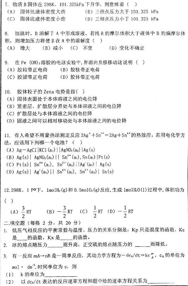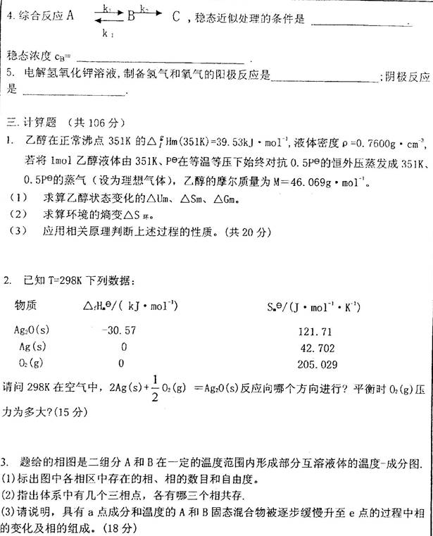 2. 全国名校物理化学考研真题汇总(含部分答案)