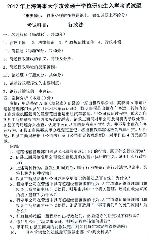 1. 上海海事大学法学院《行政法》历年考研真题汇总