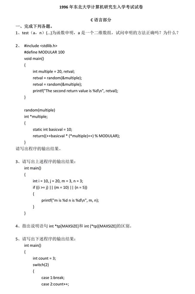 1996年东北大学计算机专业基础考研真题