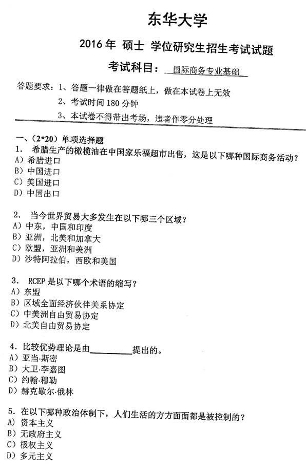 2020年东华大学《434国际商务专业基础》考研真题(回忆版)