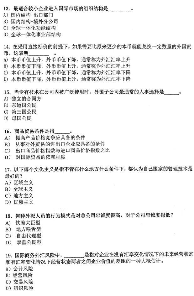 2019年东华大学《434国际商务专业基础》考研真题(回忆版)