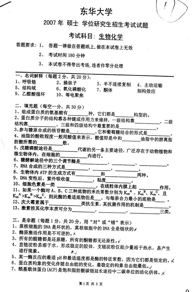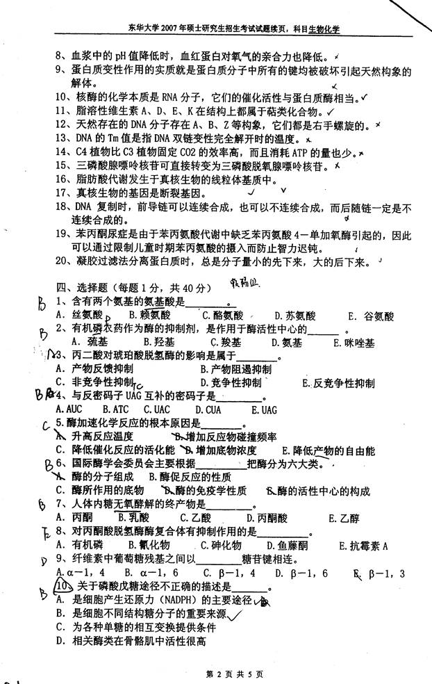 2. 全国名校生物化学考研真题汇总(含部分答案)