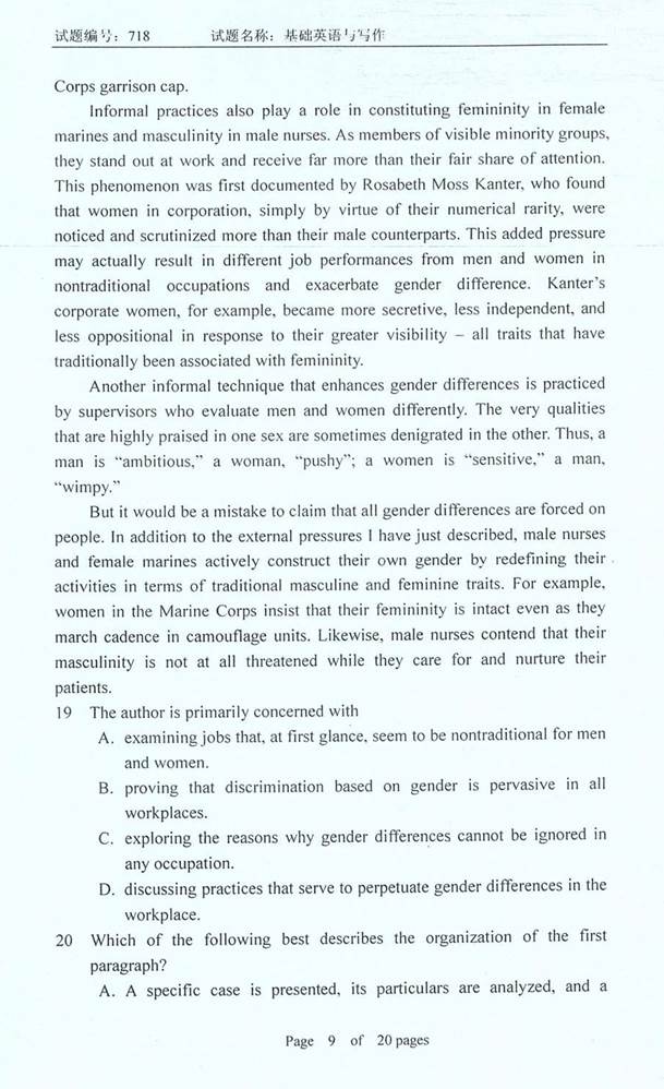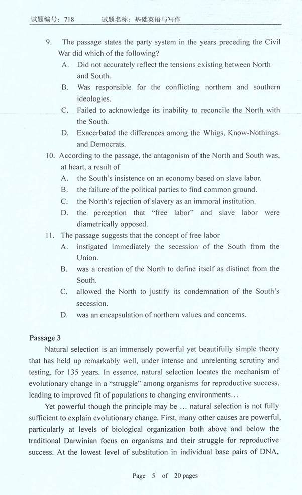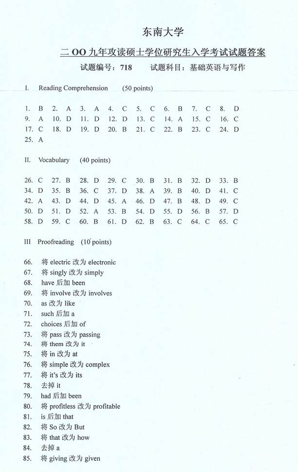 2009年东南大学718基础英语与写作考研真题(含答案)