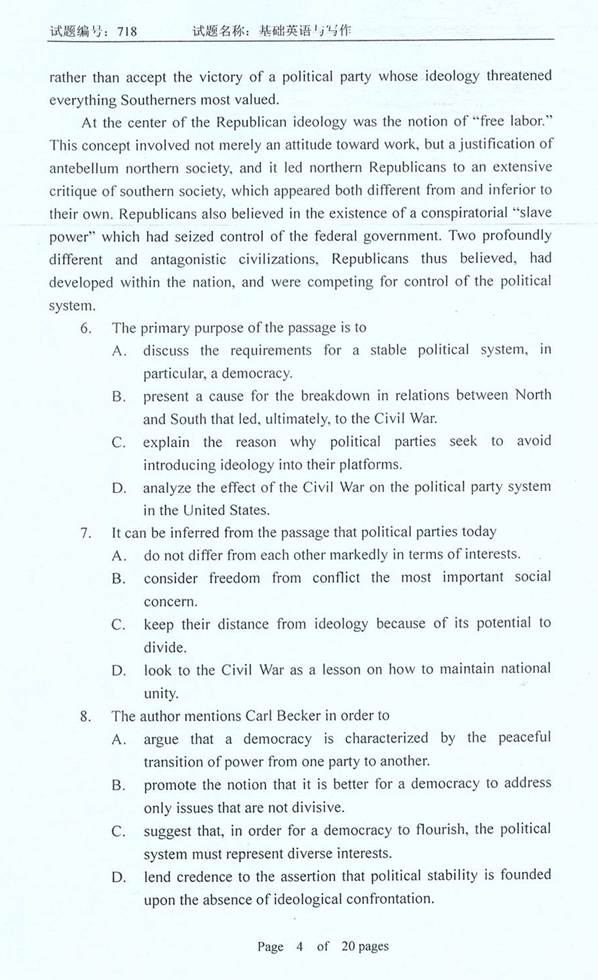 2004年东南大学718基础英语与写作考研真题(含答案)