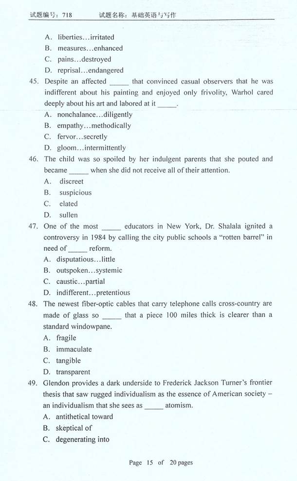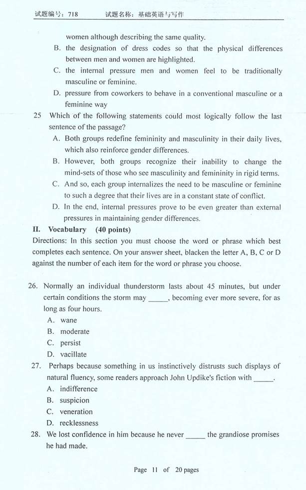 东南大学外国语学院《718基础英语与写作》历年考研真题汇总(含部分答案)