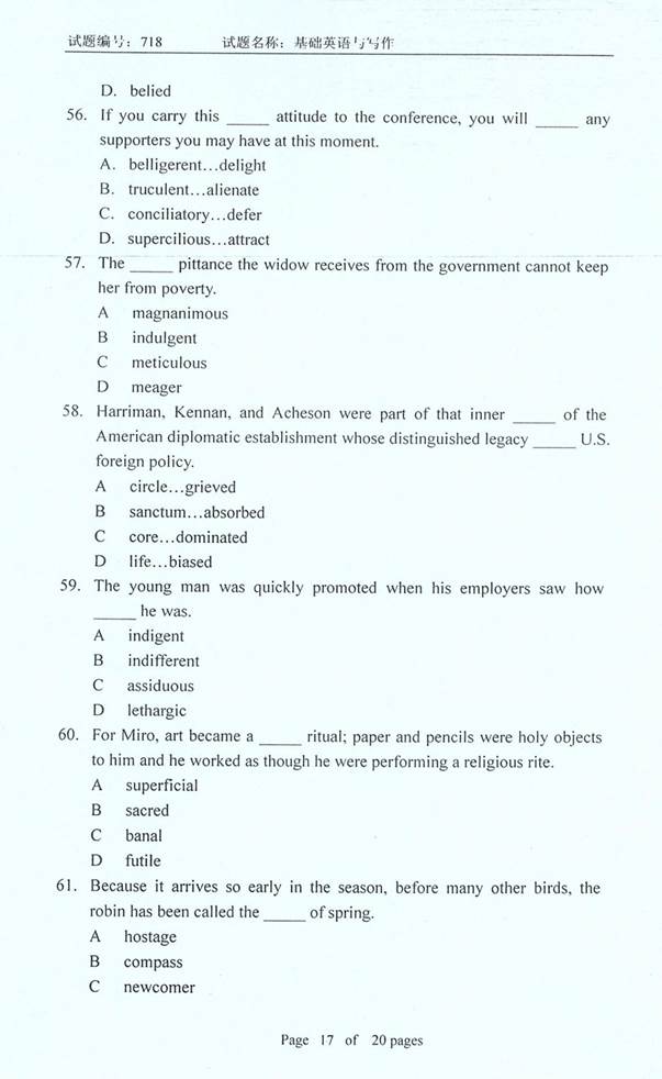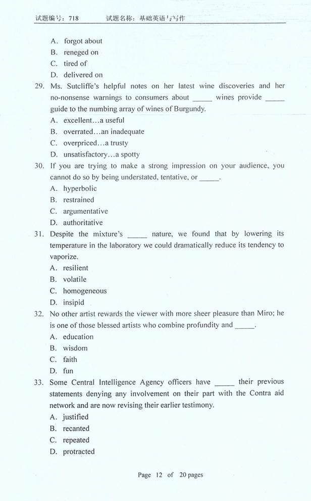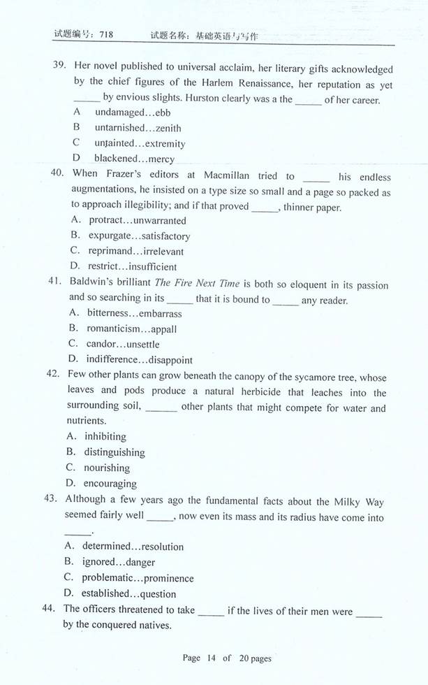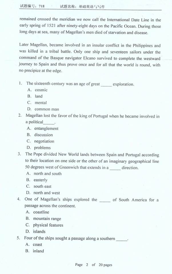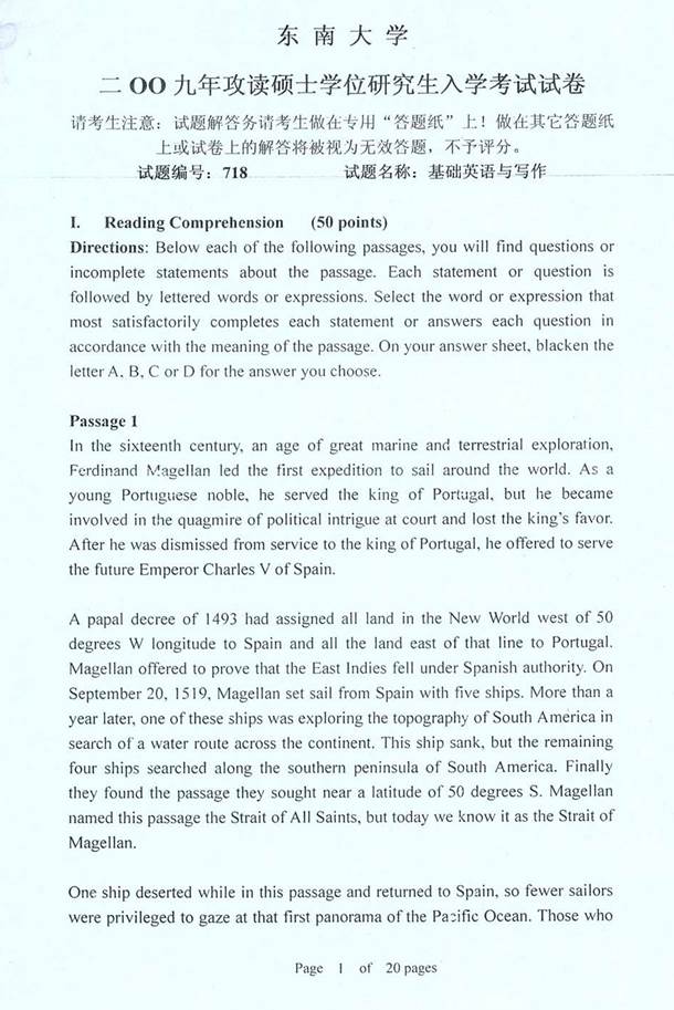 1. [电子书]东南大学外国语学院《718基础英语与写作》历年考研真题汇总(含部分答案)