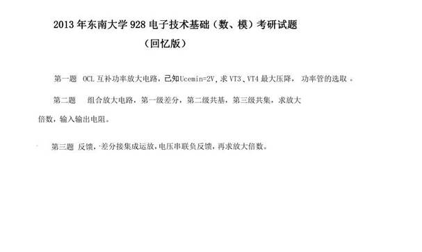 2013年东南大学928电子技术基础(数、模)考研真题(回忆版)
