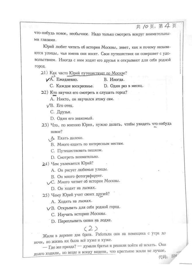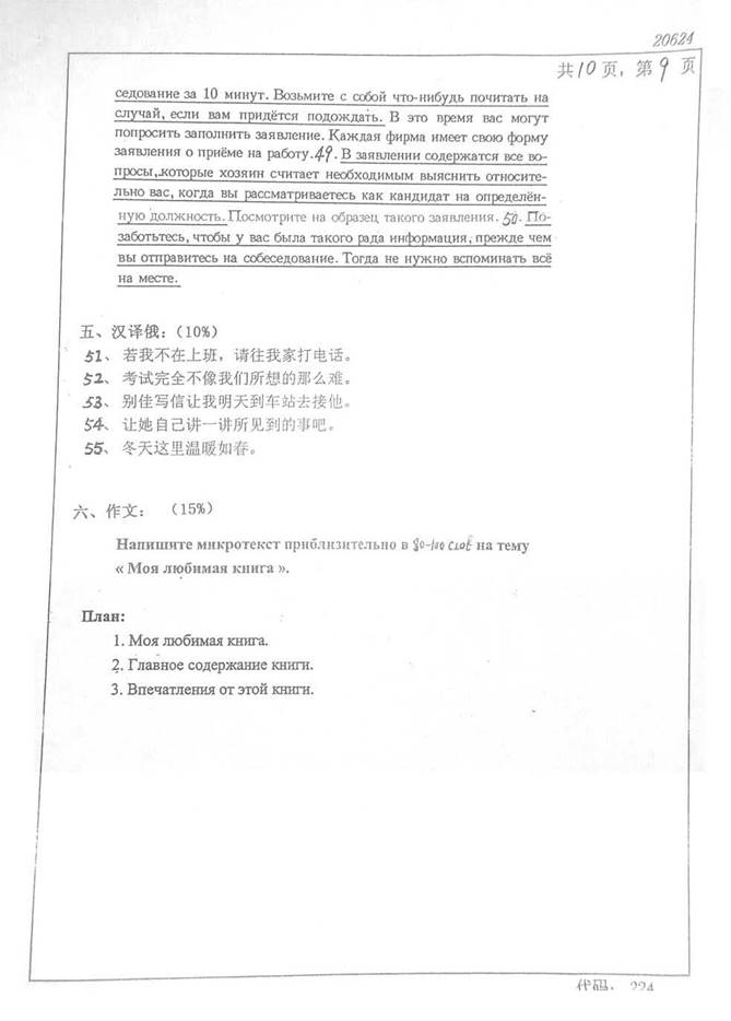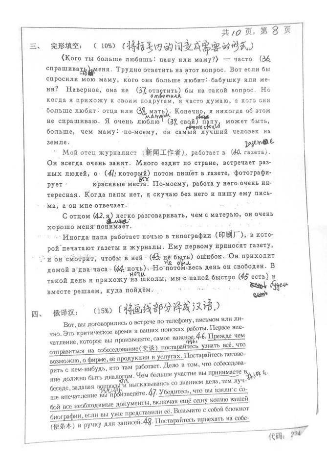 2001年中南大学外国语学院224二外俄语考研真题