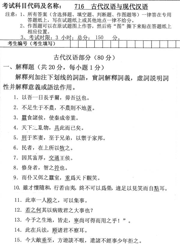 3. 全国名校古代汉语考研真题汇总