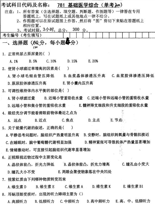 1. 中南大学《781医学综合(自命题)》历年考研真题汇总