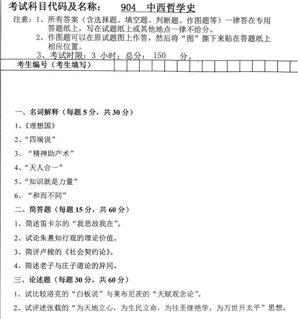 1. 中南大学文学与新闻传播学院《中西哲学史》历年考研真题汇总