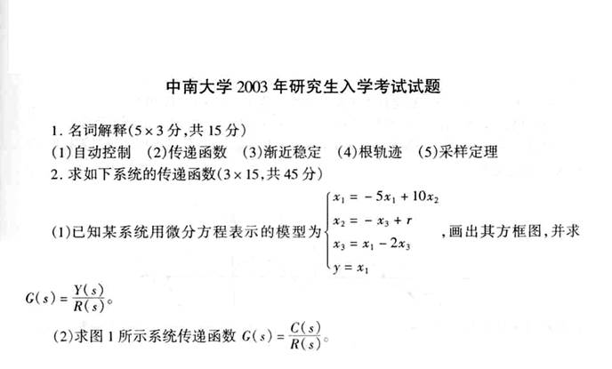 1. 中南大学自动化学院《自动控制原理(经典控制理论)》历年考研真题汇总