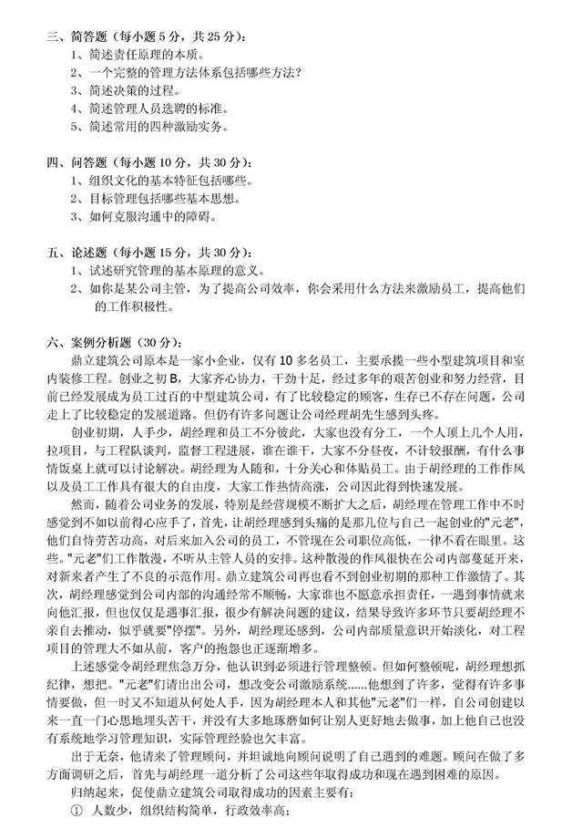 2. 全国名校管理学考研真题汇总