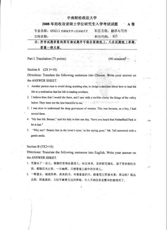 第一部分 中南财经政法大学英语写作与翻译历年考研真题汇编