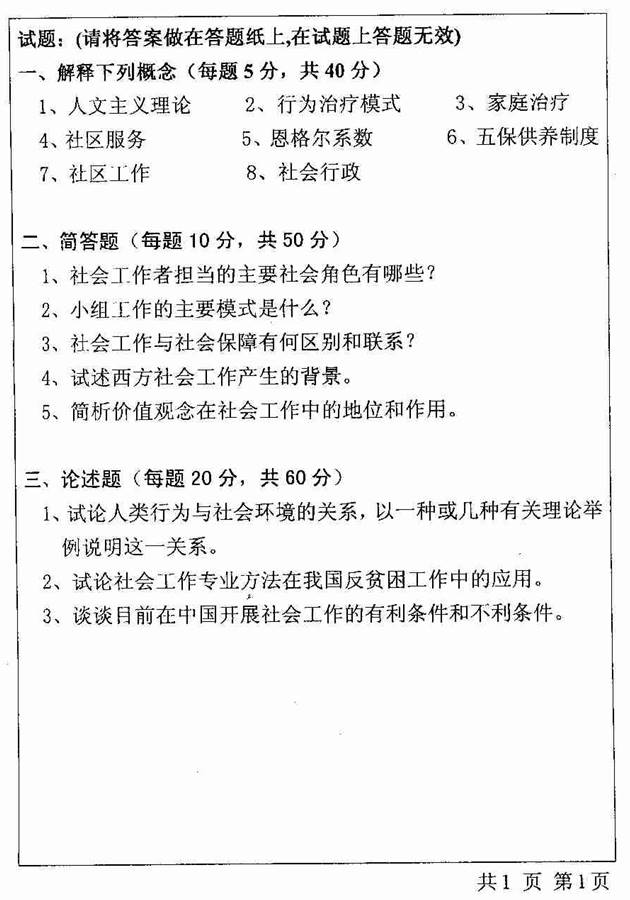 2011年中国人民大学《437社会工作实务》考研真题(回忆版,不完整)