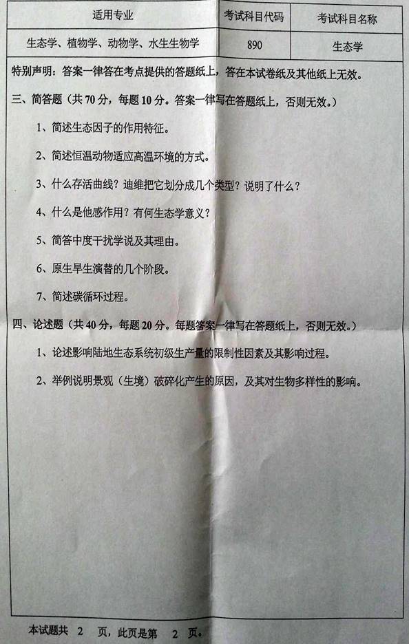 2.山东大学生态学考研真题(含部分答案)