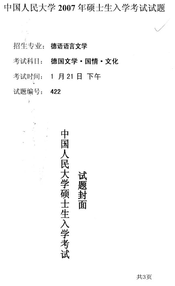 1. 中国人民大学外国语学院《821德语语言文学文化》历年考研真题汇总