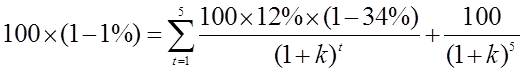 答:设债券资本成本为k,则根据题意有: