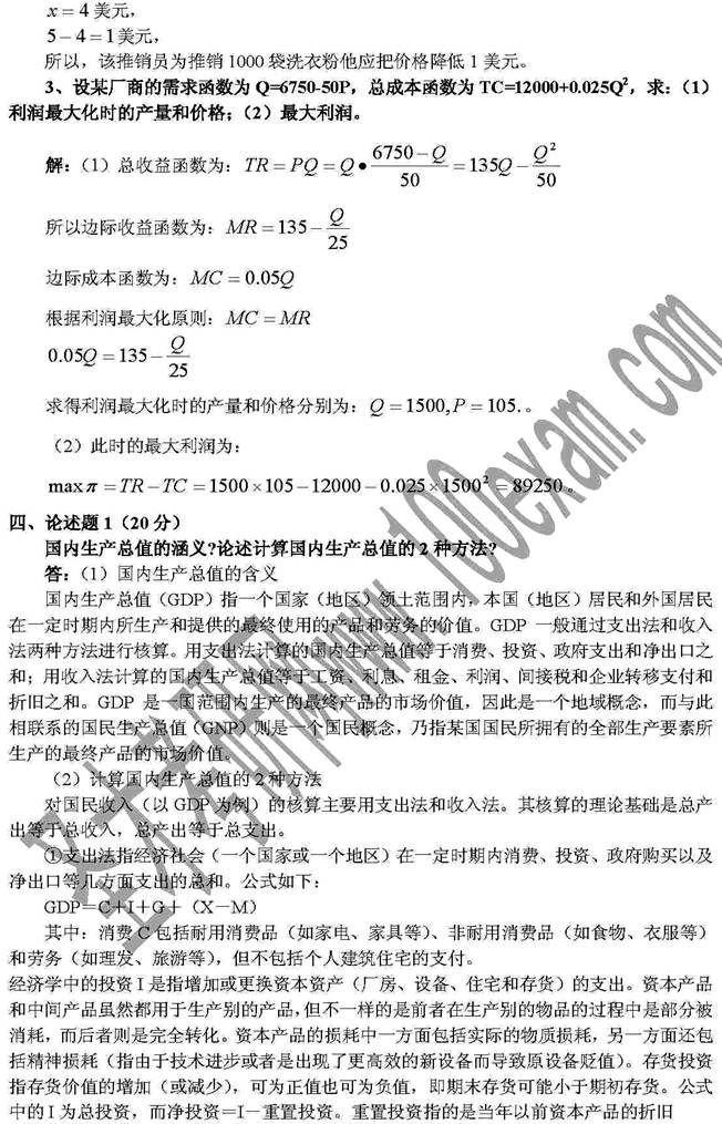 4. 全国名校经济学考研真题