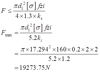 25图示螺栓连接中,采用两个M20的普通螺栓,其许用拉应力[σ]=160N/mm2,连接件结合面间摩擦系数f=0.20,防滑系数ks=1.2,计算该连接件允许传递的静载荷F=?(M20的螺栓d1=17.294mm)