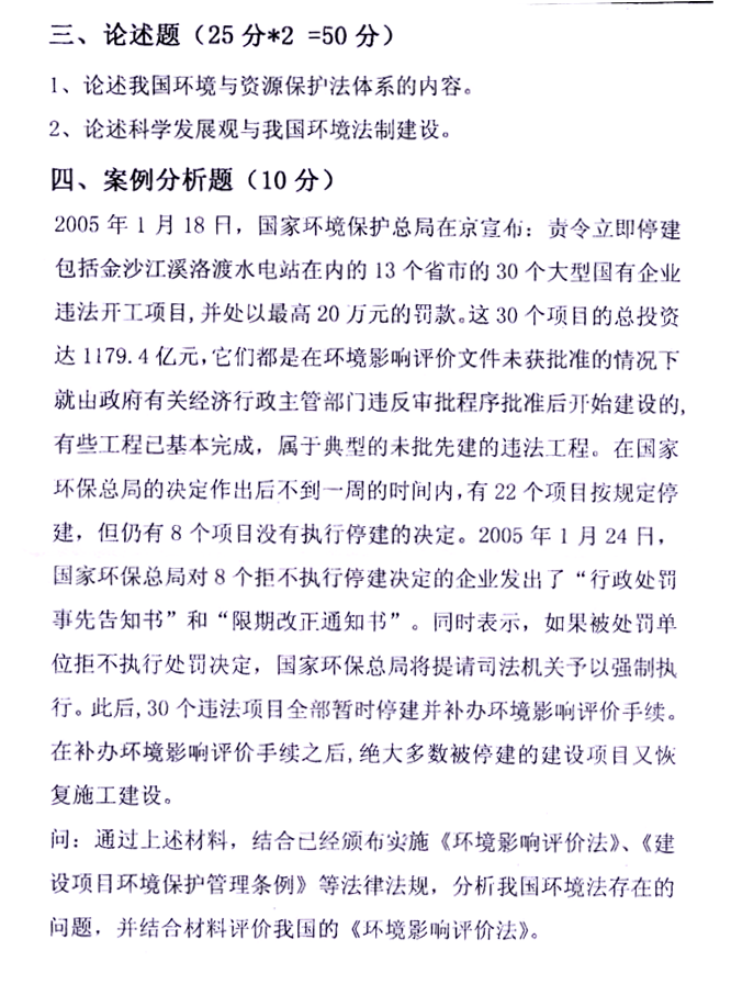 第二部分 兄弟院校环境资源法、民法学总论、刑法学总论考研真题