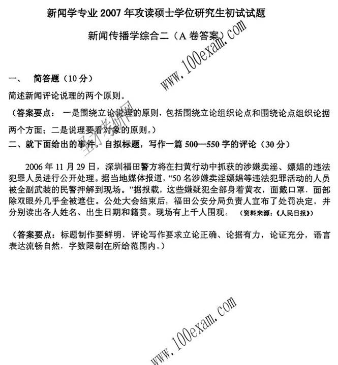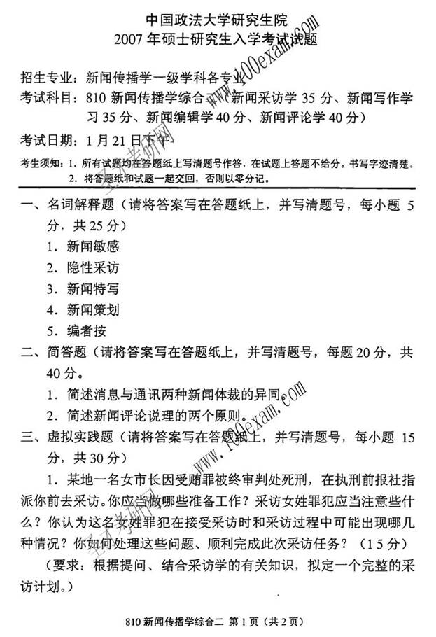 2007年中国政法大学《810新闻传播学综合二》考研真题(含答案)