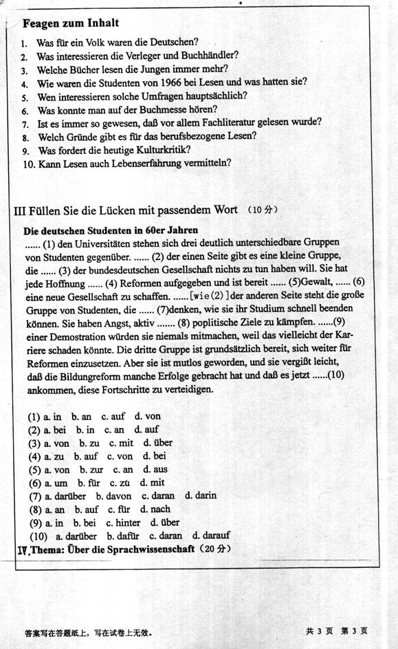 2006年中国海洋大学《217德语》考研真题