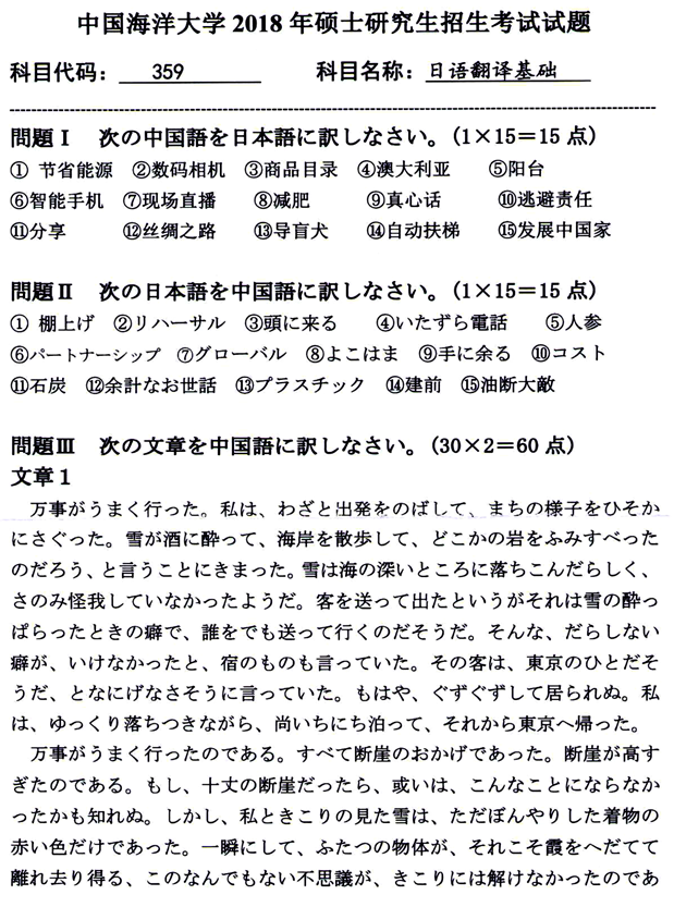 2018年中国海洋大学《359日语翻译基础》考研真题