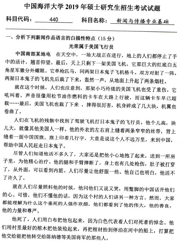 2019年中国海洋大学《440新闻与传播专业基础》考研真题