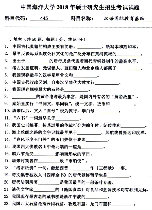 1. 中国海洋大学文学与新闻传播学院《445汉语国际教育基础》历年考研真题汇总
