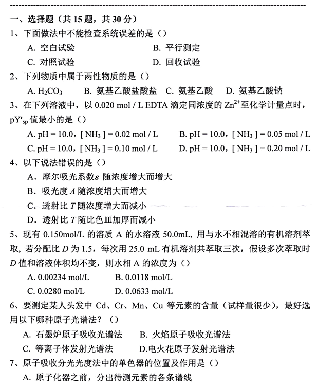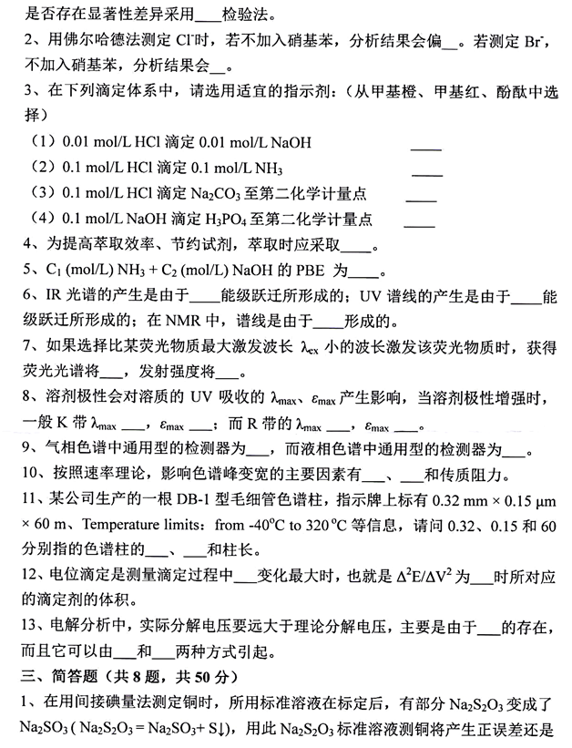 2. 全国名校分析化学考研真题汇总(含部分答案)