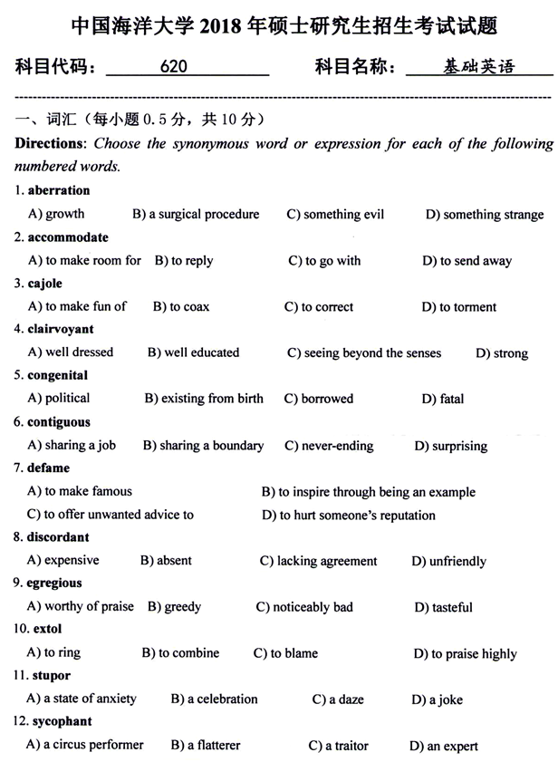 1. 中国海洋大学外国语学院《620基础英语》历年考研真题汇总