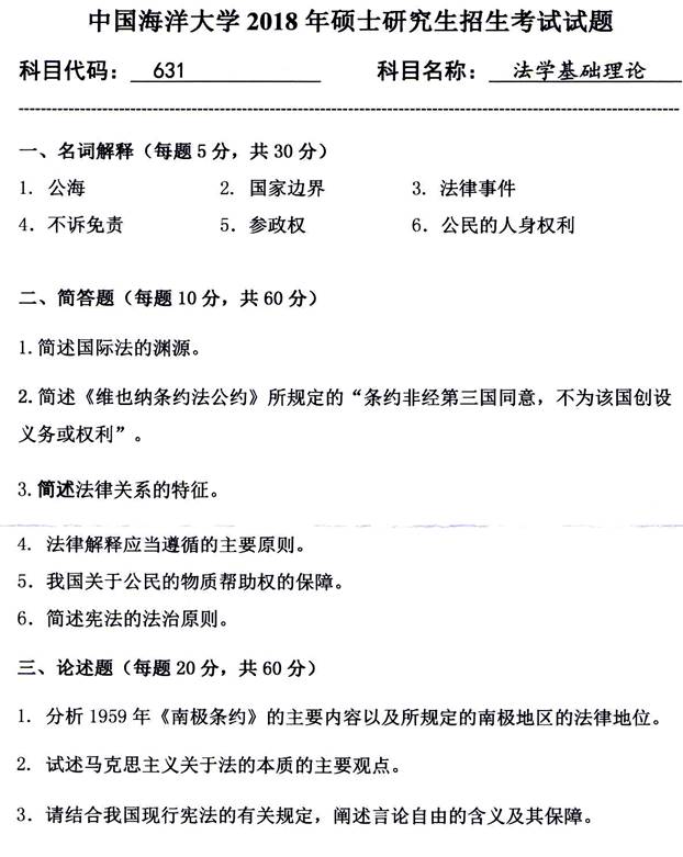 1. 中国海洋大学法学院《631法学基础理论》历年考研真题汇总
