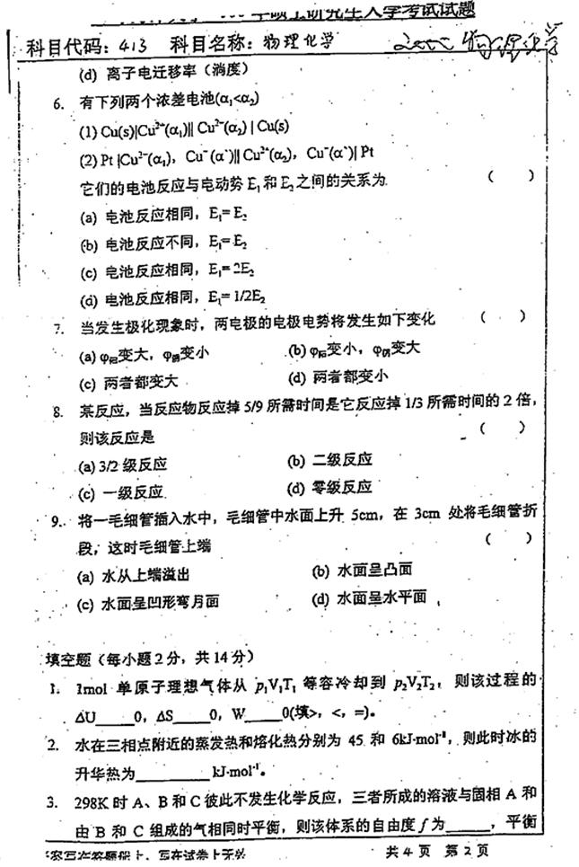 2. 全国名校物理化学考研真题汇总(含部分答案)