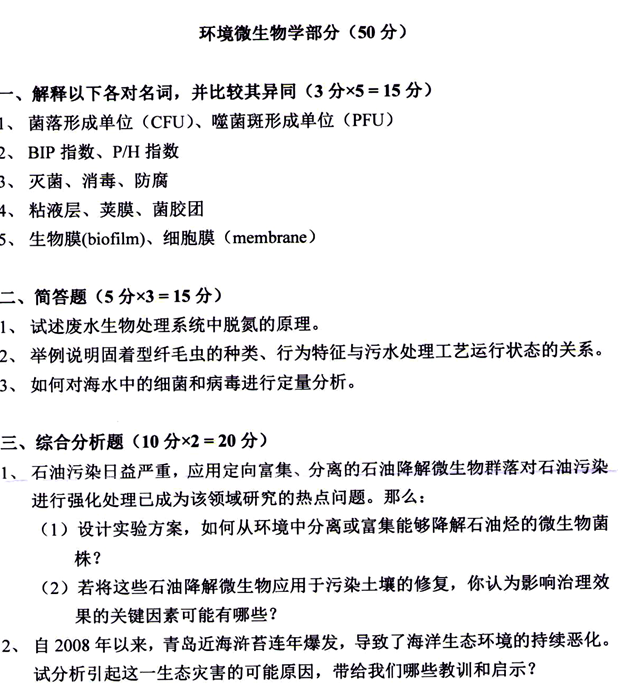 1. 中国海洋大学环境科学与工程学院《961环境工程基础A》历年考研真题汇总
