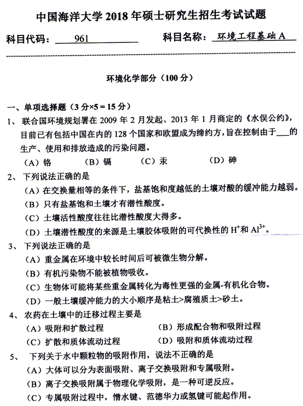 回复关键词【中国海洋大学961】或【中国海洋大学环境工程基础A】