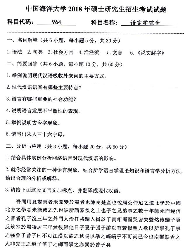 1. 中国海洋大学文学与新闻传播学院《964语言学综合》历年考研真题汇总
