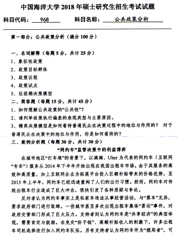 回复关键词【中国海洋大学968】或【中国海洋大学公共政策分析】