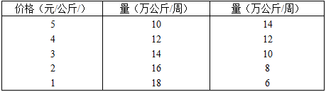 (5)如果某周由于特殊原因产量为10万公斤,则市场价格会是多少?(3分)