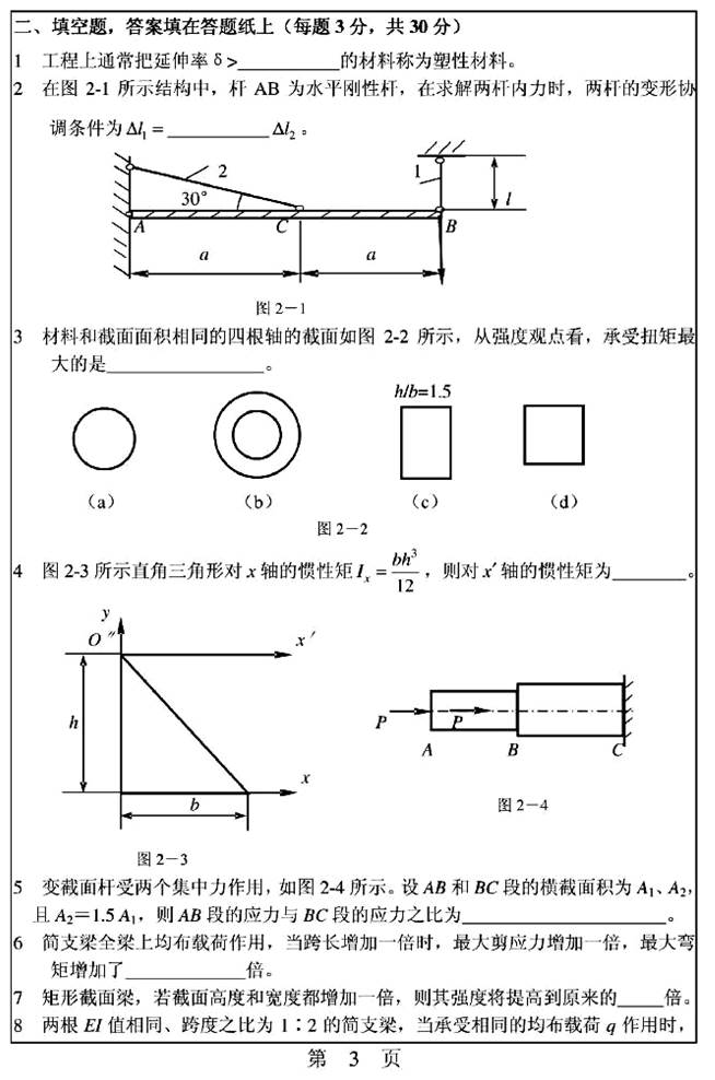 2009年中国矿业大学(北京) 804材料力学B考研真题