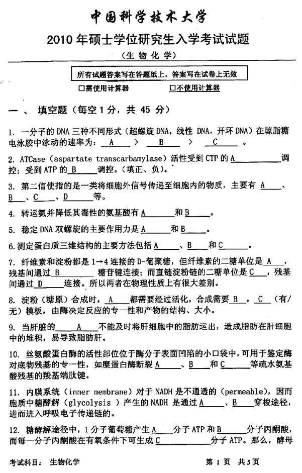 2. 全国名校生物化学考研真题汇总(含部分答案)